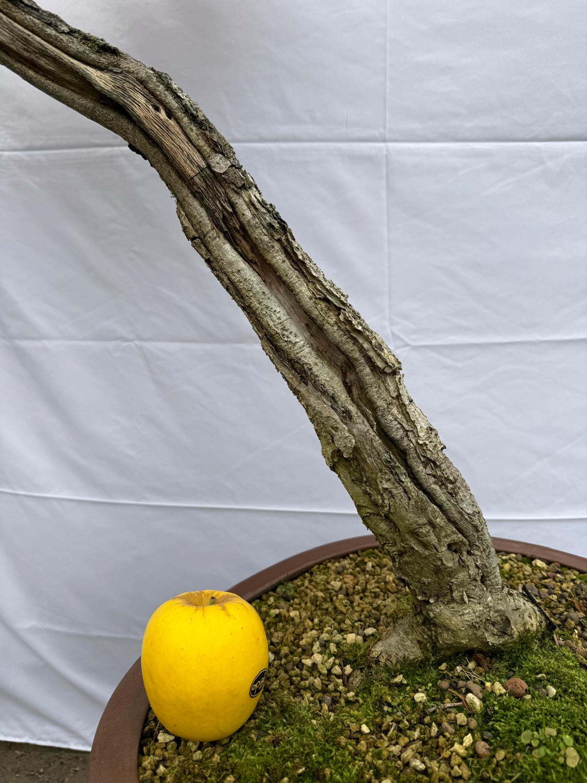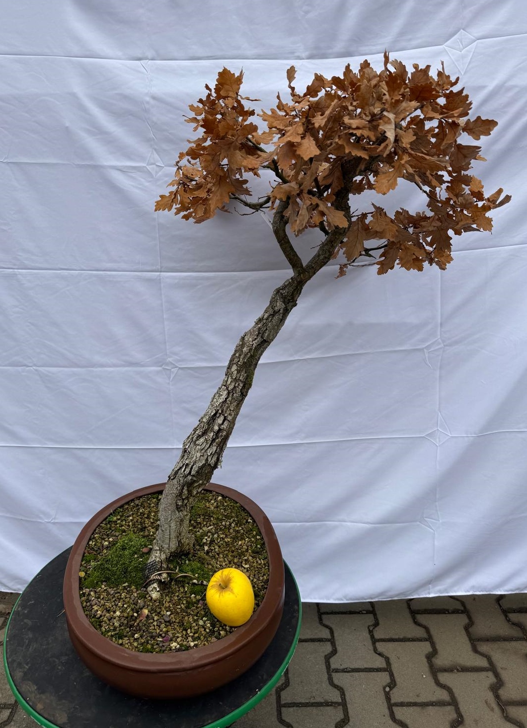 A relatively big oak yamadori, very well established in a ceramic pot and showing strong, healthy growth. The trunk features an attractive shari, adding character.